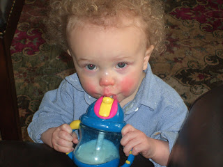 This one is of his favorite "touch down" can't stop him even with a sippee cup in hand:
