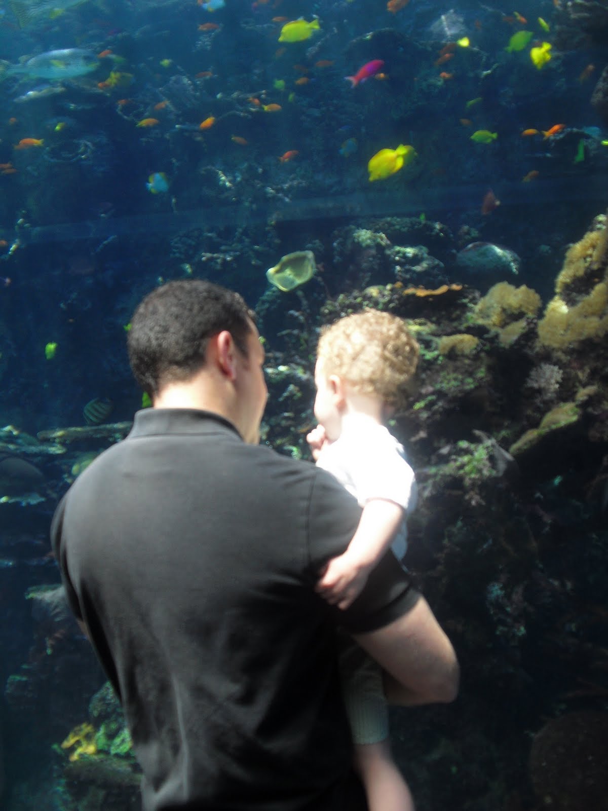 We met my Mom at Chic-fil-a for lunch and then off to the Aquarium we went. Ramsey took a quick nap on the way there and then we met up with Cope. Here is Ramsey ready to get out of the car and see some fish: